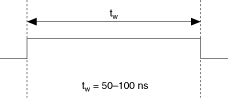 The output is an active high pulse. The following figure shows the timing behavior of the PFI 1/AI REF TRIG pin when the pin is an output.