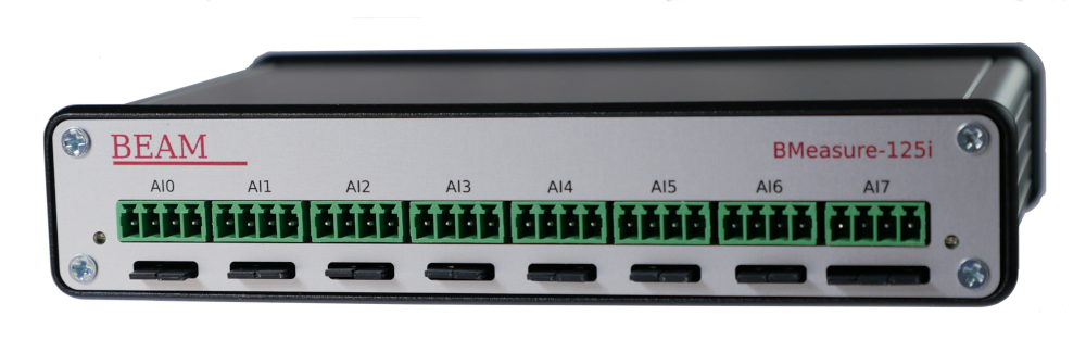 The Beam BMeasure-125i unit is a flexible and powerful IoT system for data capture, data logging and control in the laboratory, industrial and remote sensing arenas. It is based around an 8 channel, fully differential, synchronous sampling, 24 bit ADC that can sample at speeds up to 128 ksps. Multiple units can be connected together to provide more synchronously sampled channels.