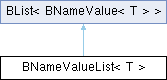 - Public Member Functions inherited from BList< BNameValue< T > >